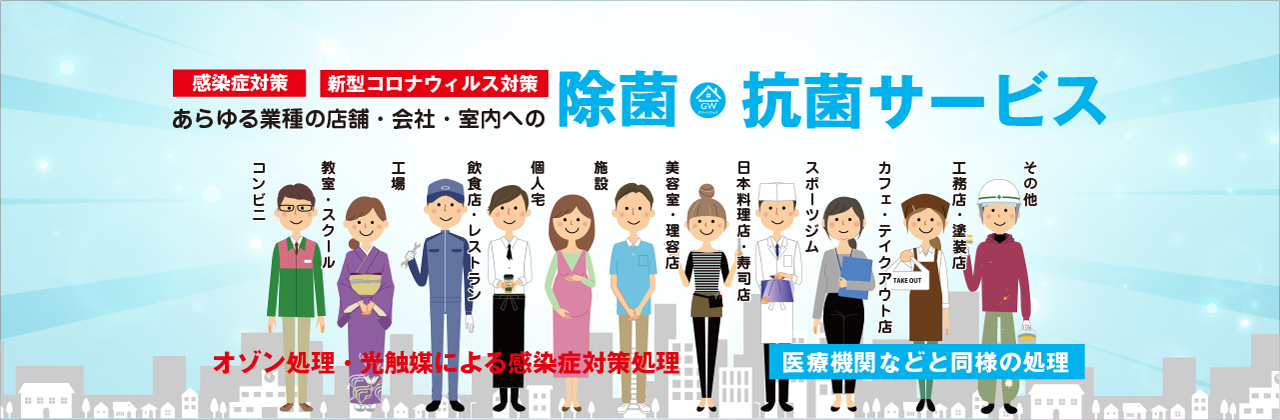 最小噴霧粒子径も7ミクロンと細かいため、殺菌剤等の薬剤が空気中に漂う時間が長く、特に衛生管理の除菌剤・消臭剤噴霧・拡散に効果的です。1ヶ月ほど効果が続きますので、月に1度ほどの定期ご依頼が効果的です。